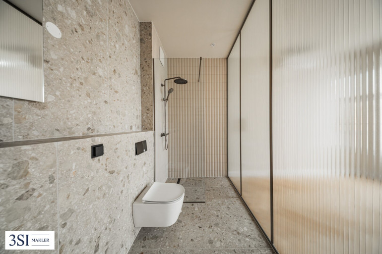 Zwei separate Abstellräume bieten Platz für Waschmaschine, Trockner und praktischen Stauraum. Ein zweites Badezimmer mit Fenster, Walk-In-Dusche und Doppelwaschbecken sowie ein separates Gäste-WC runden das Angebot ab und sorgen für höchsten Wohnkomfort.