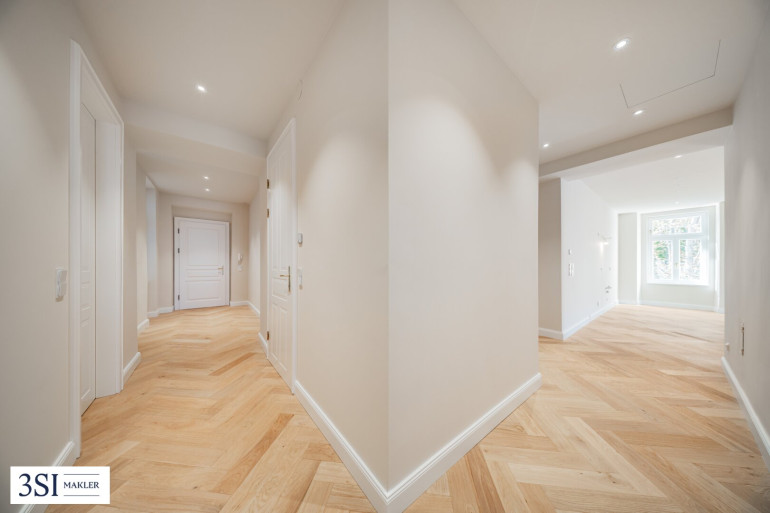 Diese großzügige Wohnung im 2. Obergeschoß vereint stilvolle Altbau-Eleganz mit zeitgemäßem Wohnkomfort. Auf rund 112 m² Wohnfläche sowie zwei Balkonen à ca. 6 m² entfaltet sich ein Zuhause, das gleichermaßen Großzügigkeit, Behaglichkeit und Eleganz vermittelt. Bereits beim Betreten schafft der einladende Vorraum ein Gefühl von Weite. Alle Räume sind zentral begehbar und durch einen angenehm proportionierten Gang miteinander verbunden, der dem Grundriss eine klare, fließende Struktur verleiht.