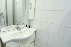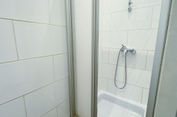 - ein Badezimmer ausgestattet mit einer Dusche