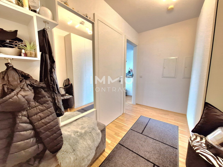 Bereits beim Betreten präsentiert sich die Wohnung durch ihre großzügigen Fensterflächen hell und lichtdurchflutet.