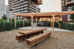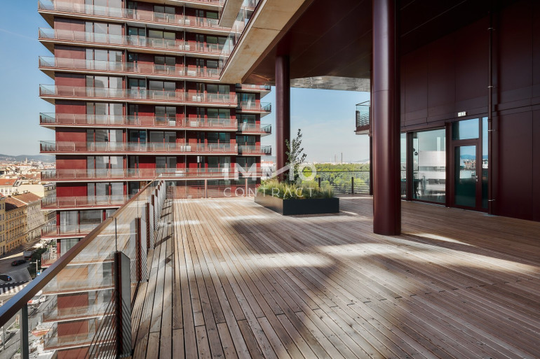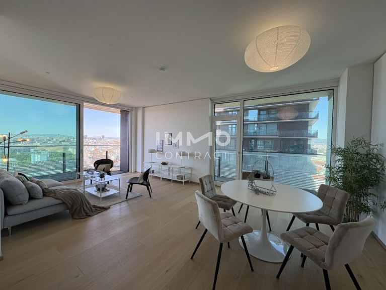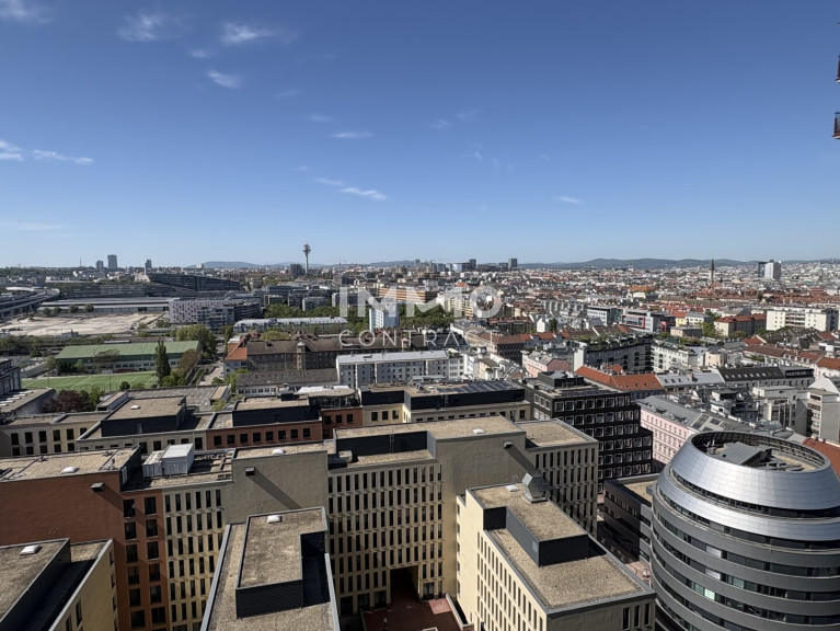 Zusätzliche Highlights des Projekts sind die Eventküche, die sich perfekt für private Feierlichkeiten eignet, sowie die großzügige Gemeinschaftsterrasse, von der aus man einen atemberaubenden Blick auf die Stadt genießt. Für gesellige Abende steht eine BBQ Area bereit, die bequem über eine hauseigene App gebucht werden kann. Das absolute Highlight ist jedoch der Pool auf dem Dach, der nicht nur für Erfrischung sorgt, sondern auch eine spektakuläre Aussicht auf die Stadt und den Prater bietet.