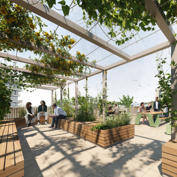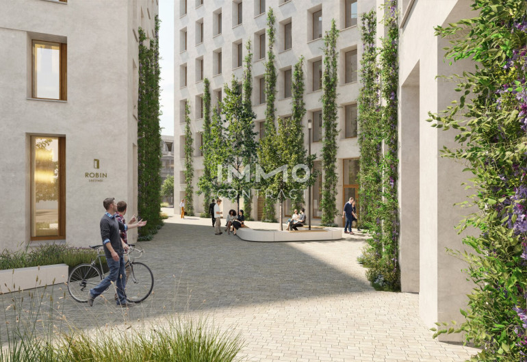 Die drei ROBIN Gebäude sind durch einen begrünten Innenhof verbunden. Freiflächen und großzügige Dachterrassen laden zu Begegnungen und Energietanken an der frischen Luft ein.