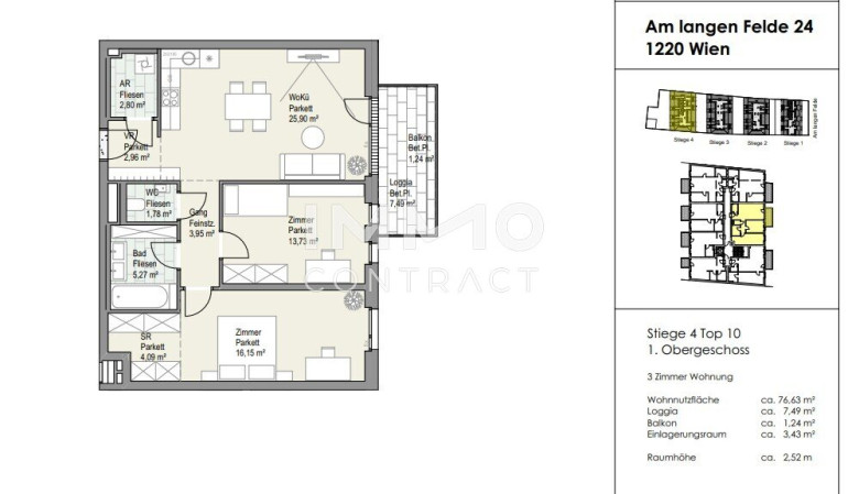 Die fertiggestellten Eigentumswohnungen Am Langen Felde 24 liegen in ausgezeichneter Lage der Donaustadt – nur wenige Minuten von der U1 Kagraner Platz entfernt. Die Umgebung verbindet urbanen Komfort mit naturnaher Erholung: Alte Donau, Lobau, die Blumengärten Hirschstetten und der Badeteich Hirschstetten bieten zahlreiche Freizeitmöglichkeiten im Grünen. Sämtliche Nahversorger, Schulen, Kindergärten und Ärzte sind fußläufig erreichbar. Das nahegelegene Donauzentrum und die hervorragende öffentliche Anbindung sorgen für beste Infrastruktur. Der 22. Bezirk zählt zu den aufstrebendsten Wohngegenden Wiens – eine Wohnung hier steht für hohe Lebensqualität und eine wertbeständige Investition.Beschreibung der Immobilie