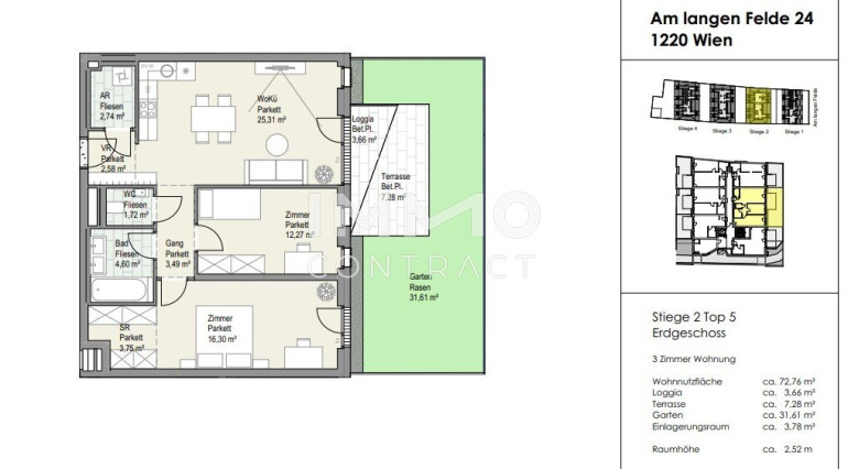 Die fertiggestellten Eigentumswohnungen Am Langen Felde 24 liegen in ausgezeichneter Lage der Donaustadt – nur wenige Minuten von der U1 Kagraner Platz entfernt. Die Umgebung verbindet urbanen Komfort mit naturnaher Erholung: Alte Donau, Lobau, die Blumengärten Hirschstetten und der Badeteich Hirschstetten bieten zahlreiche Freizeitmöglichkeiten im Grünen. Sämtliche Nahversorger, Schulen, Kindergärten und Ärzte sind fußläufig erreichbar. Das nahegelegene Donauzentrum und die hervorragende öffentliche Anbindung sorgen für beste Infrastruktur. Der 22. Bezirk zählt zu den aufstrebendsten Wohngegenden Wiens – eine Wohnung hier steht für hohe Lebensqualität und eine wertbeständige Investition.Beschreibung der Immobilie
