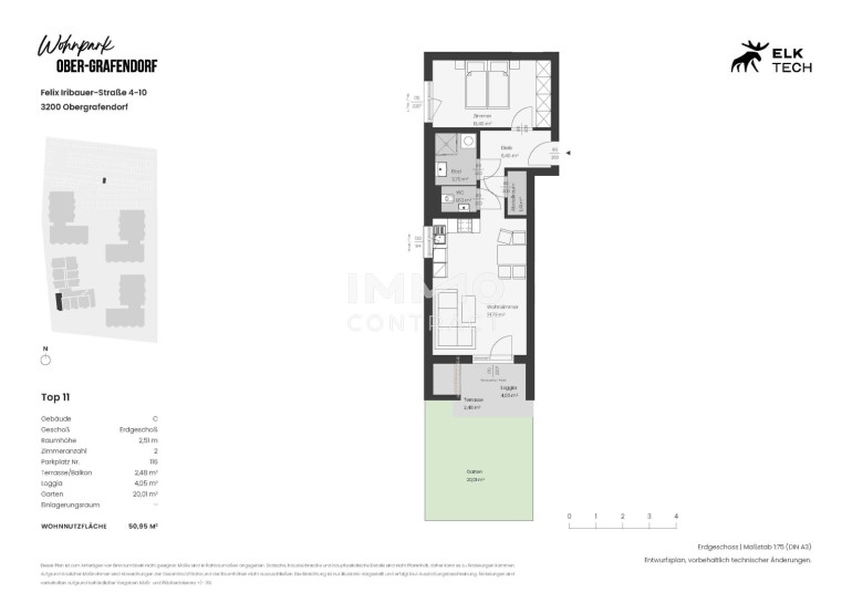 Der attraktive Wohnpark befindet sich im malerischen Ort Ober-Grafendorf, eingebettet in die reizvolle Landschaft Niederösterreichs. Die Region überzeugt durch ihre harmonische Mischung aus ländlicher Idylle und urbanem Komfort. Hier genießen Sie die Ruhe der Natur, ohne auf die Vorzüge städtischer Annehmlichkeiten verzichten zu müssen. In der unmittelbaren Umgebung finden Sie eine gute Infrastruktur mit Einkaufsmöglichkeiten, Restaurants und Cafés, die den täglichen Bedarf decken. Dank der Nähe zu Schulen und Kindergärten eignet sich die Lage ideal für Familien. Darüber hinaus besticht der Ort durch seine hervorragenden Verkehrsanbindungen an die umliegenden Städte, was Pendlern ein entspanntes Erreichen ihres Arbeitsplatzes ermöglicht. Freizeitliebhaber schätzen die zahlreichen Naherholungsgebiete insbesondere den Ebersdorfer See, die zu ausgedehnten Spaziergängen und sportlichen Aktivitäten einladen. Kulturfreunde kommen ebenfalls auf ihre Kosten, da die Region reich an kulturellen Veranstaltungen und historischen Sehenswürdigkeiten ist.Beschreibung der Immobilie