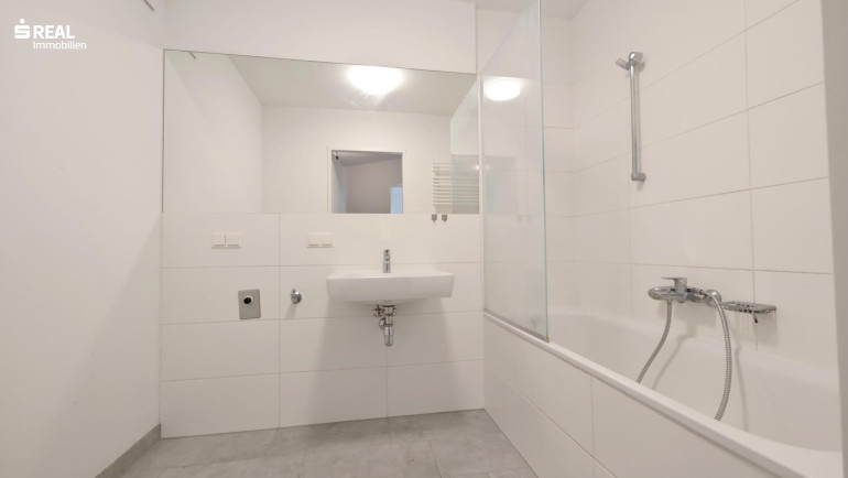 Die Parkettböden in den Zimmern, sowie die hellen Fliesen in Bad und Toilette vermitteln einen hochwertigen Eindruck. Die Nassräume sind zudem mit modernen Sanitärelementen, die elegante weiße Küche mit modernen Geräten ausgestattet.