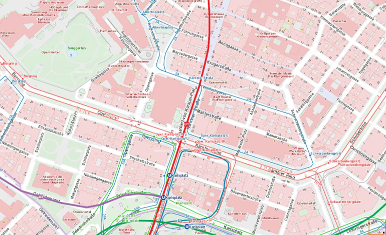 Die Lage ist einfach perfekt: es ist eine sehr gute öffentliche Verkehrsanbindung gegeben - sowohl im Nahverkehr durch die U-Bahnlinie 1, 2, 4 (Karlsplatz), die Straßenbahnlinien 1, 2, 71, D, 62 (Oper, Karlsplatz) sowie durch die Buslinien 59 A (Oper, Karlsplatz), die sich in wenigen Gehminuten erreichen lassen, als auch im Fernverkehr durch die Badner Bahn (Wiener Oper).