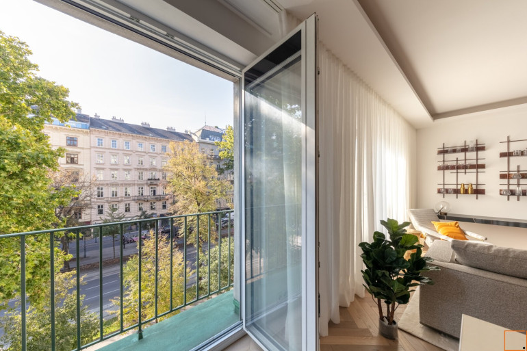 Diese Top-Immobilie mit französischen Fenstern und kleinen Austritten in Richtung Ring ist ein absolutes Unikat und ein Gesamtkunstwerk. Dieses Gesamtkunstwerk mit einer Fläche von 111 m² befindet sich im 3. Liftstock der Liegenschaft und gelangt auf 5 Jahre befristet zur Vermietung.