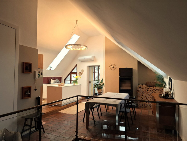 Neben dem einzigartigen, offen gestalteten Split-Level-Zuschnitt über zwei Ebenen – mit einem über eine halbhoch versetzte Galerie erschlossenen Schlafbereich – überzeugen trotz Dachgeschoßlage die luftigen Räume mit Raumhöhen von überwiegend 3–4 m. Die Wohnung präsentiert sich in einem äußerst gepflegten Zustand und besticht durch eine hochwertige, neuwertige Ausstattung und ein durchdachtes Zusammenspiel von Design, Komfort und Sicherheit. Die Gesamtfläche beträgt 251,5 m², zuzüglich einer Terrasse mit 7,5 m².