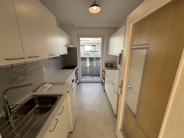 Fliesen, Parkett, Zentralheizung, Einbauküche, Südbalkon, Bad mit Fenster, Badewanne