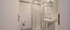 + Bad mit Dusche, Waschbecken, beleuchtetem Spiegelschrank, WC und Waschmaschinenanschluss