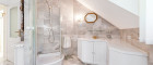 • Dachgeschoss: Der private Rückzugsort mit Master-Suite, Ankleidezimmer, luxuriösem Badezimmer und Zugang zur Dachterrasse. Zwei weitere Schlafzimmer, jeweils mit eigenem Bad, garantieren höchsten Wohnkomfort und Privatsphäre.
