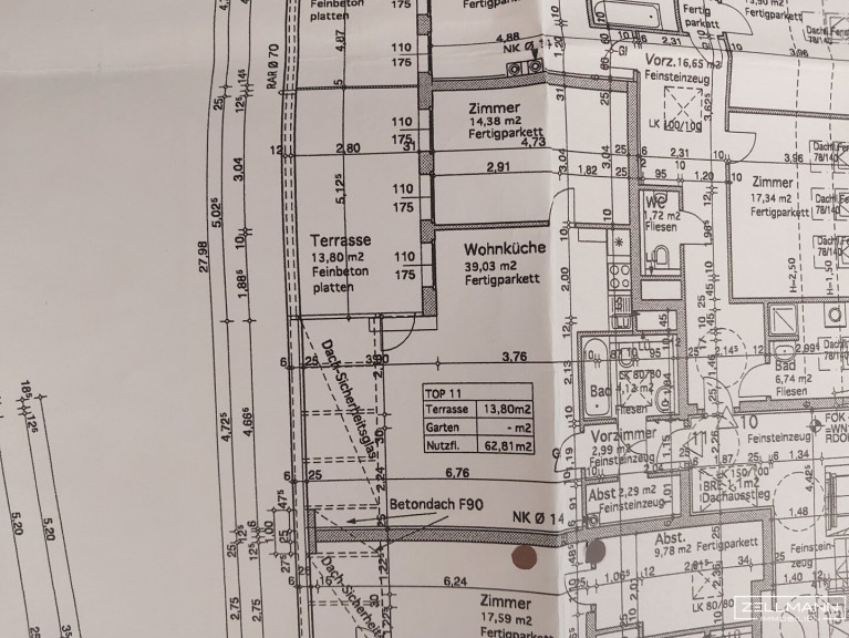 Die Wohnung Top 11 verfügt über eine Nutzfläche von ca. 62,8 m² und überzeugt durch einen großzügigen, gut durchdachten Grundriss. Herzstück der Wohnung ist die offen gestaltete Wohnküche mit rund 39 m², die vielfältige Einrichtungsmöglichkeiten bietet und dank großer Fensterflächen besonders hell und freundlich wirkt. Von hier aus gelangt man direkt auf die sonnige Terrasse mit ca. 13,8 m², die einen geschützten Rückzugsort im Freien schafft – ideal zum Entspannen mit Blick ins Grüne.