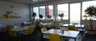 Verbindung: EG + OG mit Aufenthaltsraum, Kantine und Terrasse.