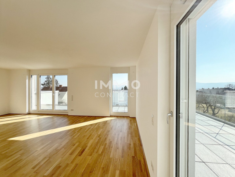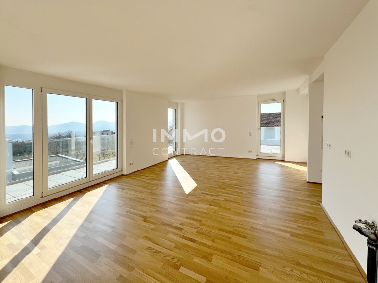 Die Dachgeschosswohnungen bezaubern mit 35qm - 65qm großen Terrassen und Panoramablick.