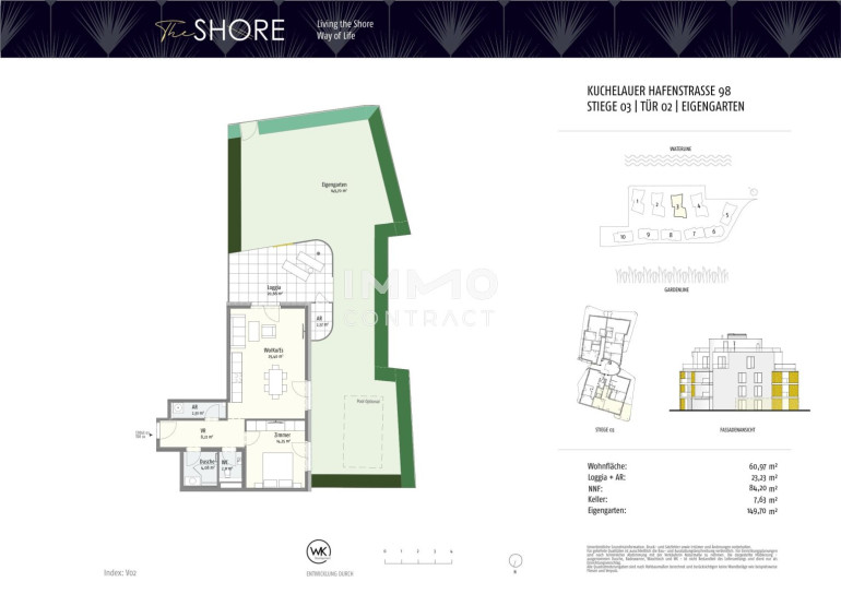 Dieses einzigartige Projekt im 19. Bezirk bietet Ihnen nicht nur ein außergewöhnliches Wohnumfeld, sondern auch eine hervorragende Anbindung an das Wiener Stadtzentrum. Hier genießen Sie die Ruhe am Wasser und sind dennoch nur 15 Minuten von der Wiener Innenstadt entfernt. Viele der beliebten traditionellen Wiener Heurigen sind von dieser Adresse für exklusives Wohnen fußläufig erreichbar und der nahegelegene Leopoldsberg und Kahlenberg bieten nicht nur einen herrlichen Anblick, sondern laden auch zu Freizeitaktivitäten ein.Beschreibung der Immobilie