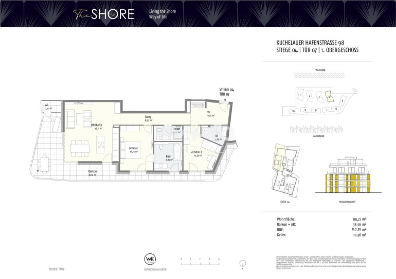 Dieses einzigartige Projekt im 19. Bezirk bietet Ihnen nicht nur ein außergewöhnliches Wohnumfeld, sondern auch eine hervorragende Anbindung an das Wiener Stadtzentrum. Hier genießen Sie die Ruhe am Wasser und sind dennoch nur 15 Minuten von der Wiener Innenstadt entfernt. Viele der beliebten traditionellen Wiener Heurigen sind von dieser Adresse für exklusives Wohnen fußläufig erreichbar und der nahegelegene Leopoldsberg und Kahlenberg bieten nicht nur einen herrlichen Anblick, sondern laden auch zu Freizeitaktivitäten ein.Beschreibung der Immobilie