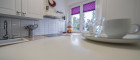 Edle Feinsteinfliesen in Vorraum, Küche, Bad und WC