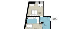 Vorraum, Wohnraum inkl. Küche, Schlafzimmer, Badezimmer mit WC und Balkon.