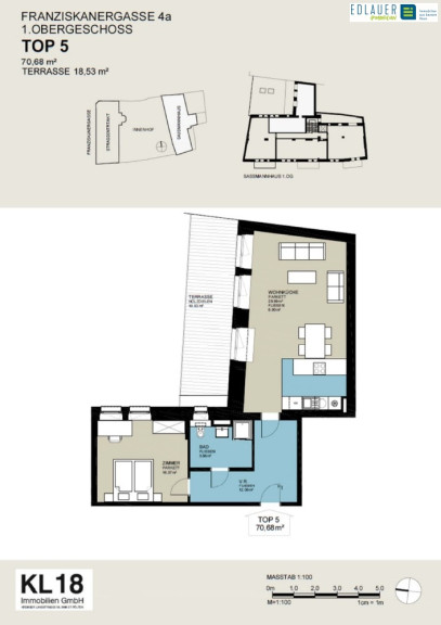 Die Wohnung Top 5 mit ca. 70,68 m² liegt im 1. Obergeschoß – ein Lift ist selbstverständlich vorhanden – und verfügt über folgendes Raumprogramm: