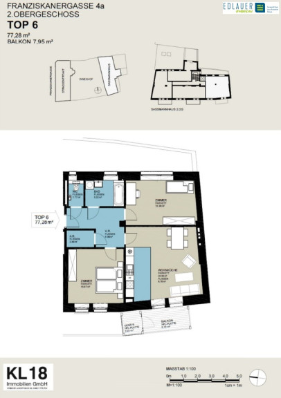 Die Wohnung Top 6 mit ca. 77,28 m² liegt im 2. Obergeschoß – ein Lift ist selbstverständlich vorhanden – und verfügt über folgendes Raumprogramm: