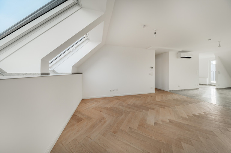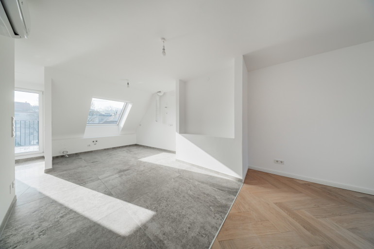 Diese exklusive Dachgeschosswohnung in einem stilvollen Altbaugebäude nahe Schönbrunn in 1120 Wien vereint modernes Design, hochwertige Ausstattung und lichtdurchflutetes Wohnen auf rund 80 m² Wohnfläche. Die Wohnung besticht durch einen offenen Grundriss und einen südlich ausgerichteten Balkon, der sonnige Stunden im Freien ermöglicht. Elektrische und teils übergroße Velux Fenster, solarbetriebene Velux-Markisen und Raffstores dienen als Sonnenschutz.