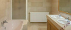 - Badezimmer mit Doppel- Waschbecken, Dusche und Badewanne