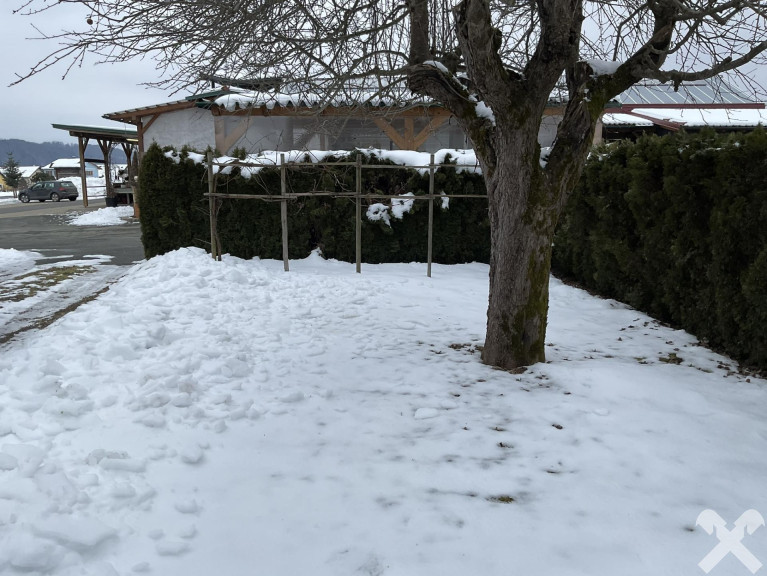 Zur Liegenschaft gehört ein Nebengebäude mit Garage sowie einer Holzhütte, die vielseitig als Stauraum, Werkstatt oder Hobbyraum genutzt werden kann.