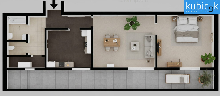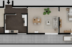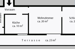 Über das Vorzimmer gelangt man in die funktional und gemütlich gestaltete Wohnküche, die ausreichend Platz für einen Esstisch bietet und sich ideal für gemeinsames Kochen und Verweilen eignet. Das helle Wohnzimmer dient als zentraler Durchgangsraum zwischen Vorzimmer und Schlafzimmer. Von hier aus gelangen Sie direkt auf die großzügige Terrasse, die den Wohnbereich um ein attraktives Außenangebot erweitert. Das angrenzende Schlafzimmer überzeugt ebenfalls mit einem eigenen Terrassenzugang und bietet damit eine ruhige Rückzugsmöglichkeit.