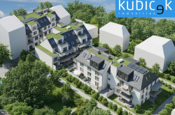 Großzügige bodentiefe Fensterfronten in edlem Kunststoff-Alu lassen das Licht herein, klare Linien und hochwertige Materialien sorgen für zeitlose Eleganz. Jede Wohnung wurde so geplant, dass Sie Funktionalität und Wohlfühlcharakter vereint. Ob offener Wohn-Ess-Bereich oder Rückzugsort zum Entspannen – hier findet jeder seinen Platz. Extensiv begrünte Flachdächer verleihen der Wohnanlage ein harmonisches, natürliches Erscheinungsbild.