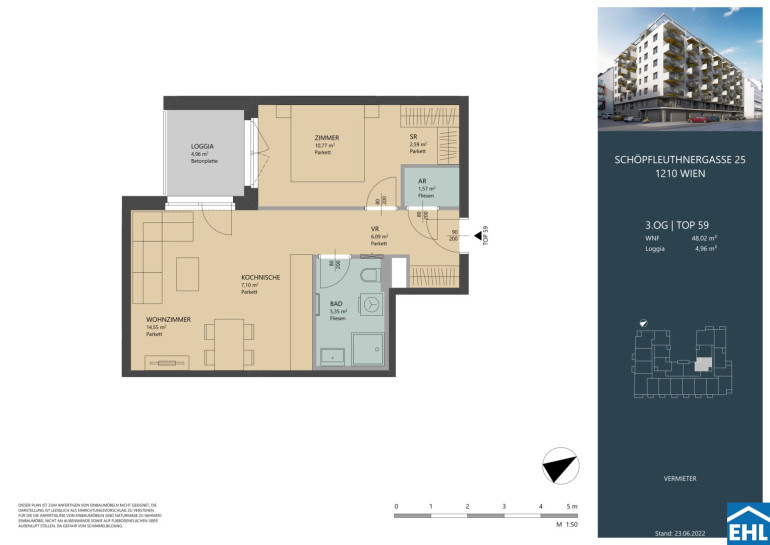 In Floridsdorf, dem 21. Bezirk von Wien, befindet sich dieses attraktive Wohnhaus mit insgesamt 155 Wohneinheiten. Alle Wohnungen verfügen über Außenflächen in Form einer Terrasse, Loggia oder Balkon und sind komfortabel durch einen Lift zu erreichen. Die hauseigene Garage bietet die Möglichkeit einen Stellplatz anzumieten.