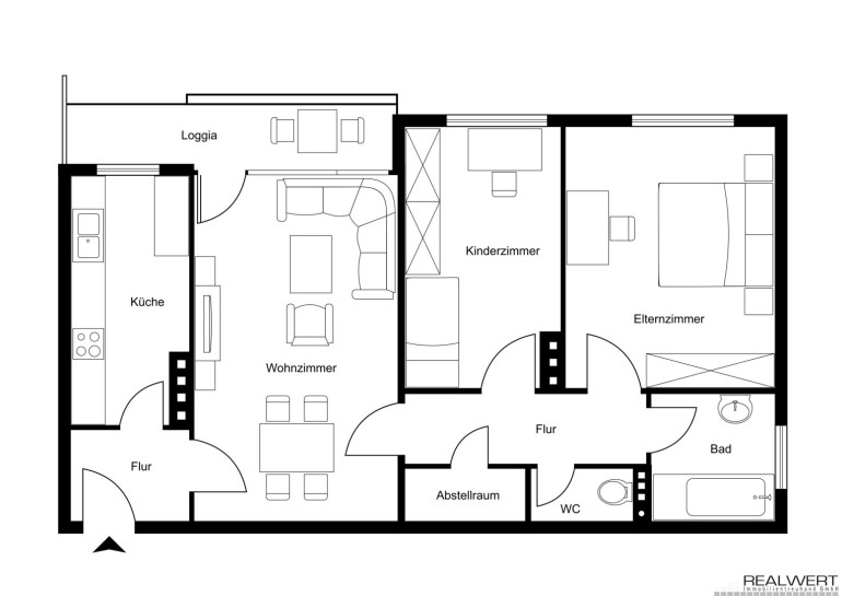 + sehr effiziente Raumeinteilung, für Kleinfamilien oder Singles