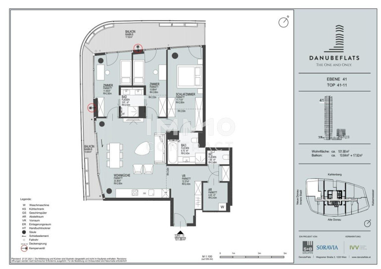 * Freizeitvergnügen vom Feinsten (Donauinsel, Donaupark, Alte Donau usw.) * Top-Anbindung an die Innenstadt, die Autobahnausfahrt sowie an den Flughafen * U-Bahn Station angrenzend an das Areal * Internationales Umfeld, UNO-City und zahlreiche internationale Unternehmen, Schulen und Ärzte in unmittelbarer Nähe * Donauzentrum (das größte Shopping-Center Wiens) in wenigen Minuten erreichbarBeschreibung der Immobilie