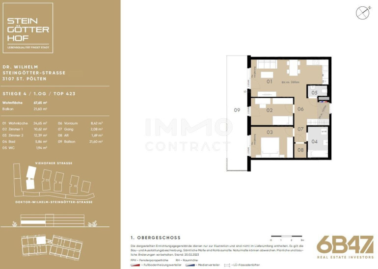 Das FreiraumQuartier St. Pölten bietet eine perfekte Verkehrsanbindung – zudem sind Sie nur wenige Gehminuten vom Naherholungsgebiet der St. Pöltner Seen entfernt. Eine Bushaltestelle, mit Verbindung zum HBH St. Pölten befindet sich direkt vor der Wohnhausanlage. Das EKZ Traisenpark mit seinen unzähligen Einkaufsmöglichkeiten ist in unmittelbarer Nähe und ebenfalls bequem zu Fuß zu erreichen. Die Wohnungen werden provisionsfrei für den Käufer angeboten! Für Fragen oder Terminvereinbarung stehen wir Ihnen gerne zur Verfügung.Beschreibung der Immobilie