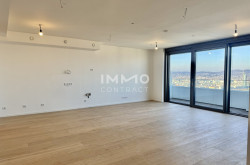 Diese großzügige Dreizimmer-Wohnung im letzten Stock vor den Penthäusern vereint Komfort, Stil und eine atemberaubende Aussicht – ideal für alle, die das Besondere suchen! Der weitläufige Wohn-Essbereich ist das Herzstück der Wohnung und bietet einen unvergleichlichen Panoramablick auf den Kahlenberg, die Donau und die Skyline der Stadt. Zwei gemütliche Schlafzimmer mit zwei modernen Bädern sorgen für höchsten Wohnkomfort und bieten ausreichend Platz für Privatsphäre und Rückzugsmöglichkeiten. Ein Wintergarten-Bereich eignet sich ideal als Arbeitsplatz oder gemütlicher Lesebereich, der für Entspannung sorgt. Der praktische Abstellraum in der Wohnung sorgt für zusätzlichen Stauraum und Ordnung. Lassen Sie den Tag bei einem gepflegten Drink ausklingen und genießen Sie die traumhaften Sonnenuntergänge – hier finden Sie Ihr ganz persönliches Hideaway inmitten der pulsierenden Stadt.