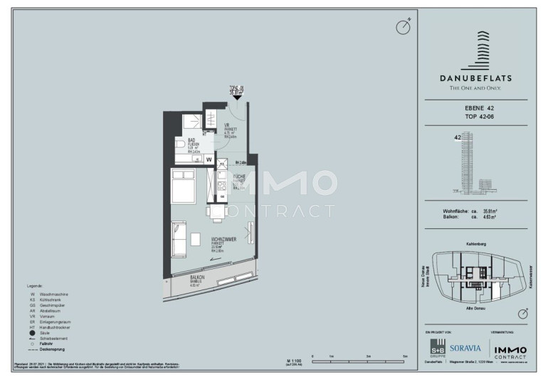 * Freizeitvergnügen vom Feinsten (Donauinsel, Donaupark, Alte Donau usw.) * Top-Anbindung an die Innenstadt, die Autobahnausfahrt sowie an den Flughafen * U-Bahn Station angrenzend an das Areal * Internationales Umfeld, UNO-City und zahlreiche internationale Unternehmen, Schulen und Ärzte in unmittelbarer Nähe * Donauzentrum (das größte Shopping-Center Wiens) in wenigen Minuten erreichbarBeschreibung der Immobilie