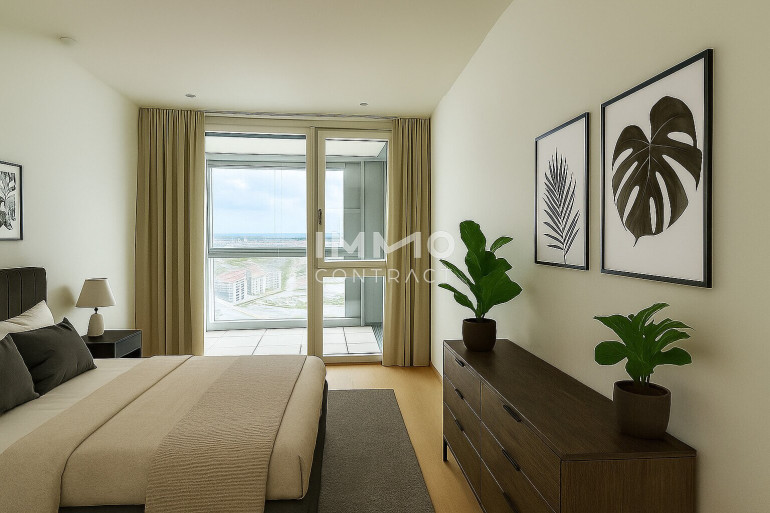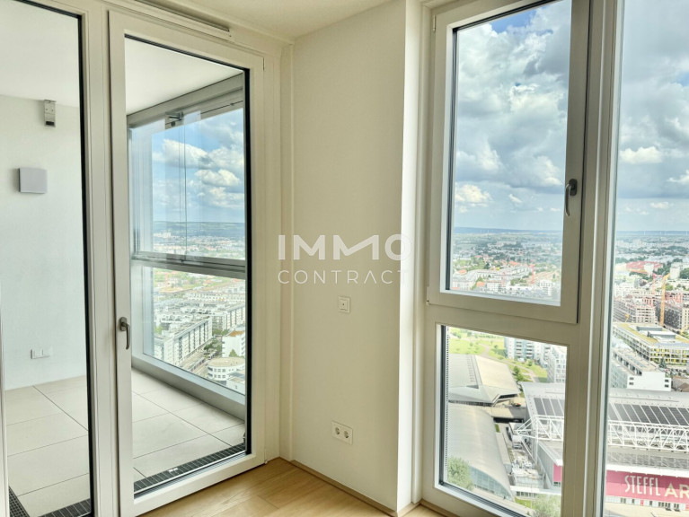Im Wohnturm befinden sich rund 300 Wohnungen in unterschiedlichen Größen, aufgeteilt in vier Ausstattungskategorien. Die wenigen noch verfügbaren Einheiten verfügen über 2-4 Zimmer und sind zwischen ca. 46 m² - ca. 215 m² groß. Sämtliche der verfügbaren Eigentumswohnungen befinden sich im 22. – 32. Stockwerk und überzeugen mit der hochwertigen Ausstattungslinie „Sky Living“ (22. - 30. OG), wobei sich die Penthouse-Etagen (31. - 32. OG) nochmals in Ihrer Beschaffenheit abheben.