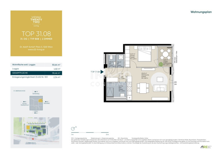 Der 22. Bezirk zählt zu den dynamischsten und aufstrebendsten Stadtteilen Wiens. Die Lage von VIENNA TWENTYTWO Living bietet die perfekte Mischung aus urbanem Lebensstil und Naturnähe. Die Alte Donau, sowie die Donauinsel befinden sich in unmittelbarer Nähe und bieten zahlreiche Freizeitmöglichkeiten wie Sport, Spazierengehen und Entspannen im Grünen. Das Projekt ist hervorragend an das öffentliche Verkehrsnetz angebunden. Die unmittelbar fußläufig erreichbare U-Bahn-Linie U1 sowie zahlreichen Buslinien ermöglichen eine direkte Verbindung ins Stadtzentrum und andere wichtige Bezirke. Auch die Infrastruktur in der Umgebung ist sehr gut: Einkaufsmöglichkeiten (Donauzentrum), Schulen, Kindergärten und medizinische Einrichtungen sind in der Nähe, was den Alltag der Bewohner erheblich erleichtert.Beschreibung der Immobilie