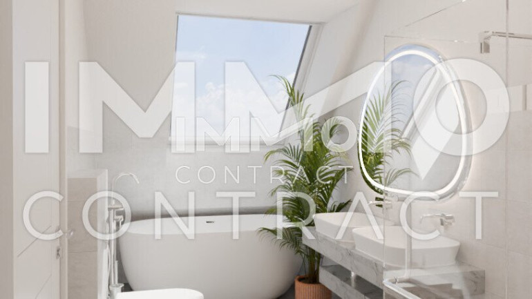 Genießen Sie den atemberaubenden Ausblick über den dritten Bezirk von zwei Terrassen: eine ostseitig für einen sonnigen Start in den Tag, die andere westseitig für entspannte Abendstunden. Die lichtdurchflutete Wohnküche mit Kamin sorgt im Winter für Wohlfühlwärme, im Sommer für angenehme Kühlung dank Betonkernaktivierung und Klima-Split-Anlage. Beide Schlafzimmer verfügen über ein En-Suite-Badezimmer, eines mit freistehender Badewanne.