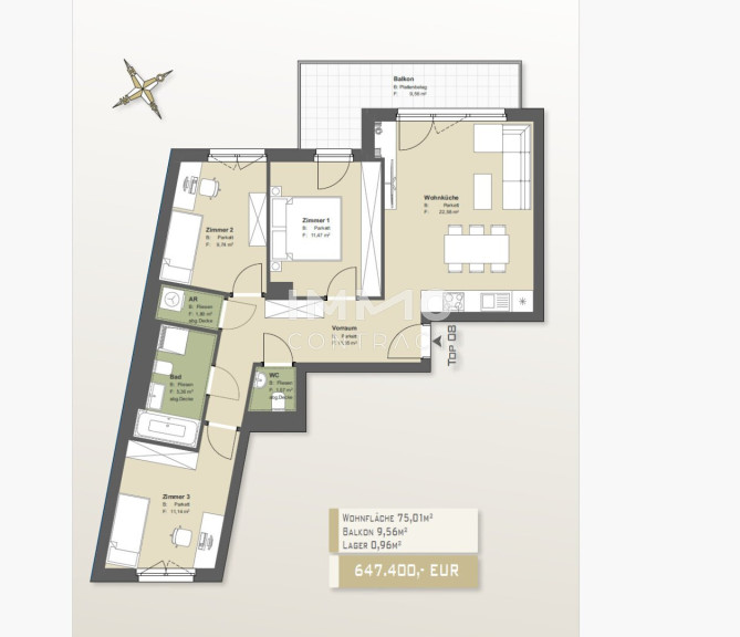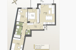 Hochwertig, durchdacht und lichtdurchflutet: Diese Wohnung bietet eine großzügige Wohnküche mit Zugang zum ruhigen Balkon, ein Elternschlafzimmer ebenfalls mit Balkonzugang sowie zwei weitere Zimmer – ideal als Kinder-, Gäste- oder Arbeitszimmer.