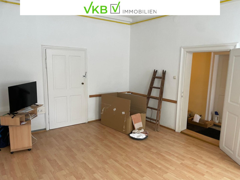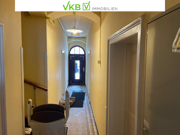 Das bestehende Wohnhaus verfügt über eine funktionale Raumaufteilung mit mehreren Zimmern und einem zentralen Eingangsbereich. Die vorhandene Bausubstanz bietet eine solide Grundlage für individuelle Adaptierungen oder Sanierungsmaßnahmen. Architektonische Elemente wie hohe Räume und klassische Durchgänge prägen den Charakter des Hauses.