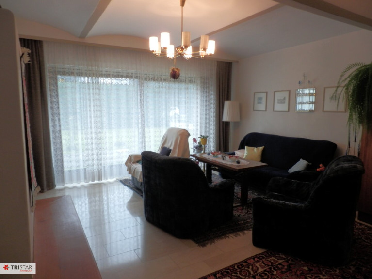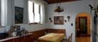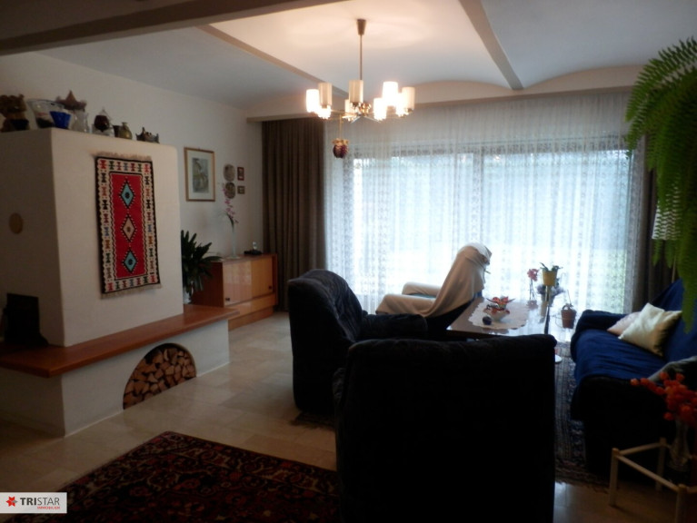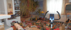 - gemütliches Wohnzimmer mit Kachelofen und Schiebetüren (zum Garten mit Terrasse)