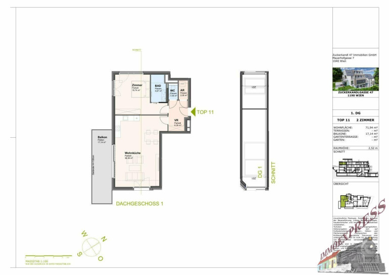 - Top 11, Dachgeschoss (2 Zimmer) Wohnfläche: ca. 71,94 m² + Balkon: ca. 17,14 m²