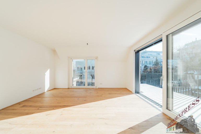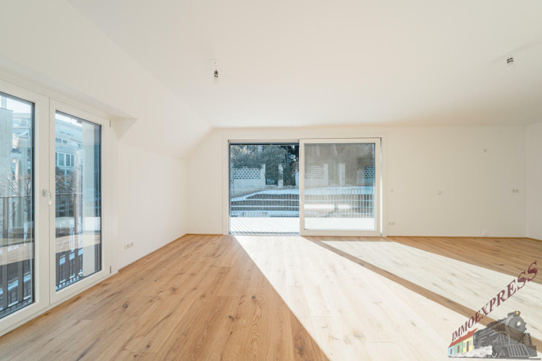 Dachtraum – großzügige 2-Zimmer-Wohnung mit südseitiger 17 m² Terrasse, Erstbezug, ruhige Lage im Dachgeschoss ohne Schrägen