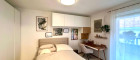 Auf ca. 59,56 m² Wohnfläche bietet sie eine klare, gut nutzbare Raumstruktur mit einer Wohnküche und zwei Schlafzimmern. Der Wohnbereich kann bei Bedarf einfach vergrößert werden, indem ein Schlafzimmer in die Wohnküche integriert wird. Der riesige überdachte Balkon mit ca. 17,99 m² erweitert den Wohnraum ins Freie.