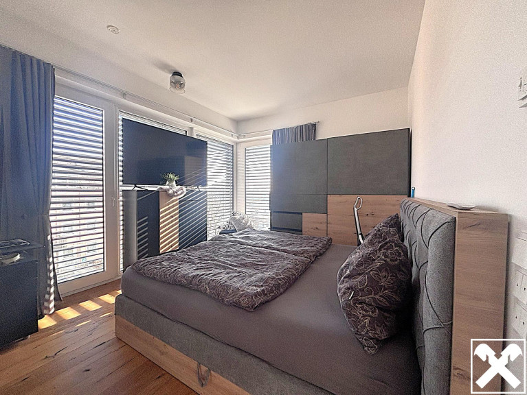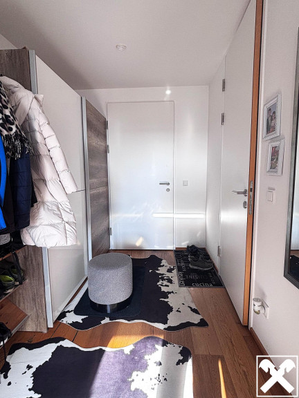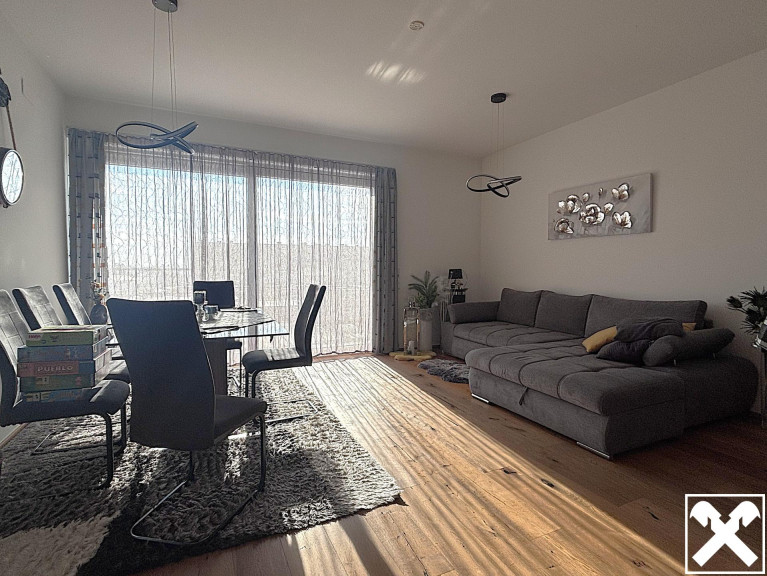 Der Vorraum geht in den großzügigen Wohn- und Essbereich samt Küche über. Dieser offen gestaltete Raum bildet das Herzstück der Wohnung. Großflächige, bodentiefe Fenster und Terrassentüren schaffen ein einzigartiges Wohngefühl.