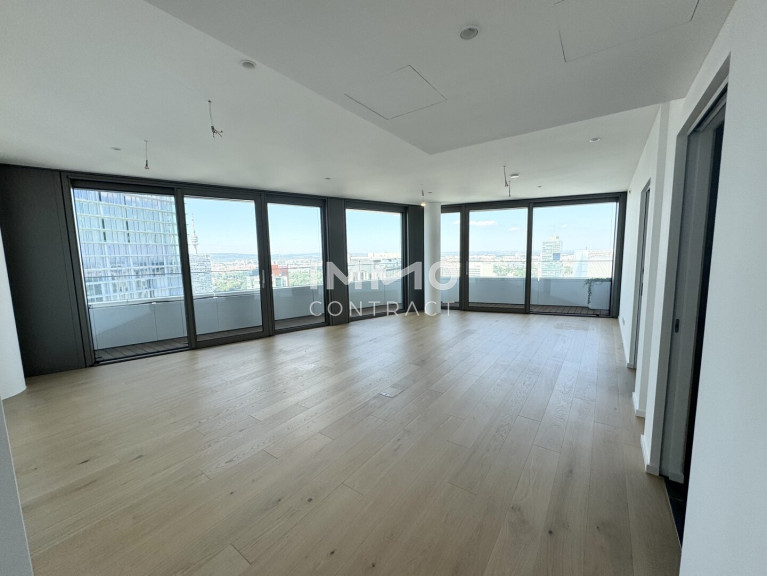 Diese luxuriöse 6-Zimmer-Wohnung bietet modernen Wohnkomfort auf höchstem Niveau. Besonders hervorzuheben ist die ca. 120 m² große Wohnküche, der perfekte Raum für kulinarische Erlebnisse und gesellige Zusammenkünfte. Große Fensterfronten bieten einen beeindruckenden Panoramablick auf die Innenstadt, die Donau und den Kahlenberg und sorgen für eine helle, lichtdurchflutete Atmosphäre. Der Masterbedroom ist ein echtes Highlight: Er verfügt über ein großzügiges, en-suite Bad mit einer freistehenden Badewanne, einer luxuriösen Walk-in-Dusche und einer privaten Sauna – ideal für entspannende Stunden in Ihrem eigenen Wellnessbereich. Zusätzlich bietet die Wohnung zwei weitere stilvoll ausgestattete Bäder, die alle mit exklusiven Armaturen und modernen Akzenten überzeugen. Die sechs Zimmer lassen sich individuell gestalten, sei es als Schlafzimmer, Arbeitszimmer oder Gästezimmer. Eine begehbare Garderobe sorgt für praktischen Stauraum und erhöht den Komfort der Wohnung.