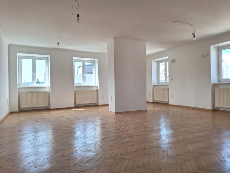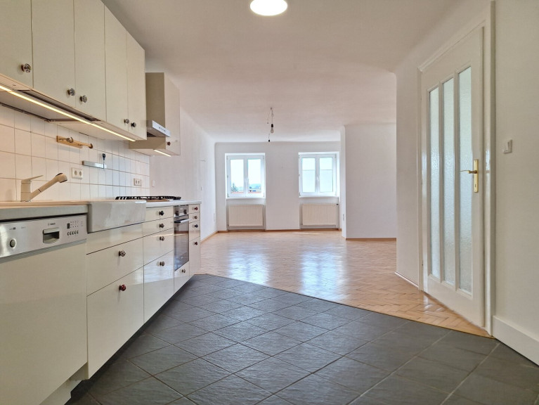 Diese außergewöhnliche Dachgeschoßwohnung wurde Mitte des vorigen Jahrhunderts aus einem ehemaligen Künstleratelier geschaffen, und im Jahr 2014 aufwändig saniert, wobei sowohl die Elektrik als auch die Wasser- und Gasleitungen komplett erneuert, die Decke isoliert, sowie Bad und Küche erneuert wurden. Die originalen Parkettböden wurden ebenso wie die Türen erhalten und restauriert, während die Nassräume neu verfliest wurden. Herzstück der Wohnung ist der über 46m² große Wohnraum mit offener Küche, welcher derzeit von einem nachträglich abgetrennten knapp 12m² großen Schlafzimmer ergänzt wird, wobei auch die Abtrennung eines dritten Zimmers problemlos möglich wäre. Das großzügige Bad mit Fenster verfügt über eine Kingsize-Badewanne und eine Dusche, sowie über ein WC und Platz für eine Waschmaschine. Weiters sind ein Vorraum und 2 Abstellräume vorhanden, von denen einer über eine Anschlussmöglichkeit für ein weiteres WC verfügt. Alle Räume sind aufgrund deren geschickter Ausrichtung uneinsehbar, sodaß Sie in jedem Teil der Wohnung über viel Privatsphäre verfügen.