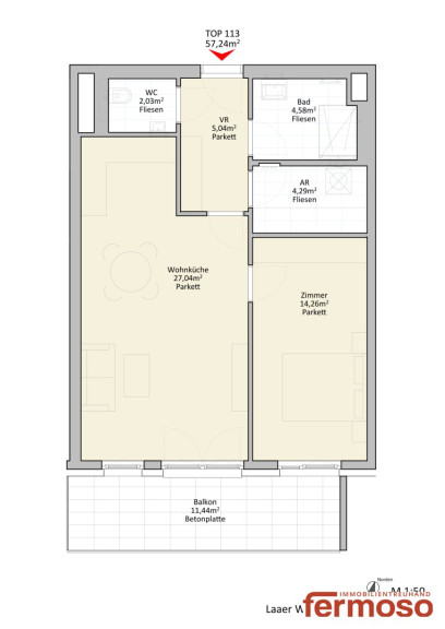 Mit einer großzügigen Fläche von 56,42 m² und zwei hellen, lichtdurchfluteten Zimmern ist diese Wohnung ideal für Singles, Paare oder auch als Investition geeignet. Der durchdachte Grundriss ermöglicht eine optimale Nutzung der Räume und schafft eine einladende Atmosphäre. Die stilvollen Fliesen und das warme Parkett sorgen für ein harmonisches Wohngefühl, während die moderne Dusche für den nötigen Komfort im Badezimmer sorgt.