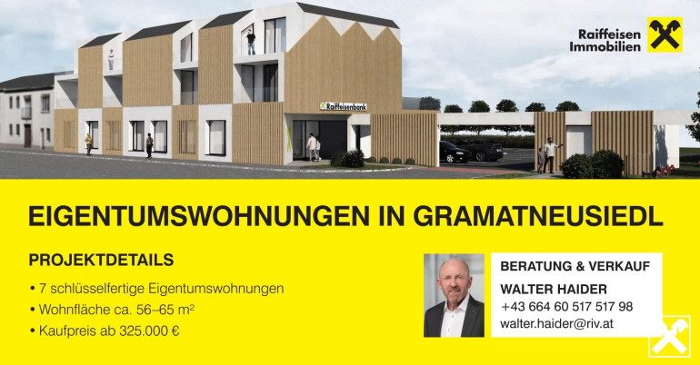Zum Verkauf steht eine moderne Eigentumswohnung im Erstbezug einer neu errichteten Wohnanlage mit Lift in Gramatneusiedl.
